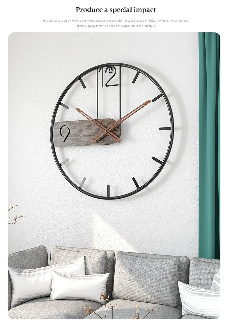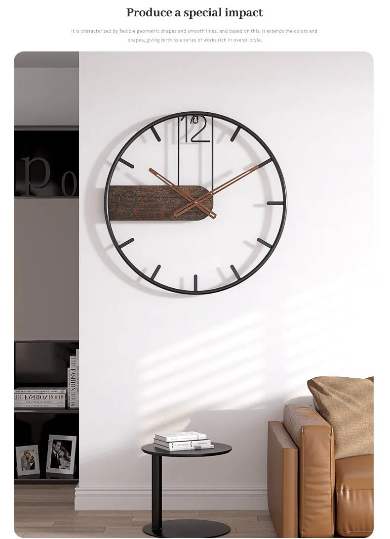 1. This high-end clock is of black metal baking paint material with a walnut pointer.