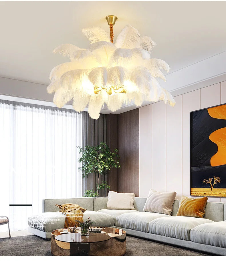 You'll be a hit among your guests with this ostrich feather pendant light. This light comes in several diffent colors to choose from. 4 bulbs are included but is not dimmable. A knob type, on and off, switch is enclosed with the lamp and voltage is 90-260V. Down metal bar is included with the pendant light. Lights an area 15-30 square meters.