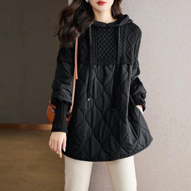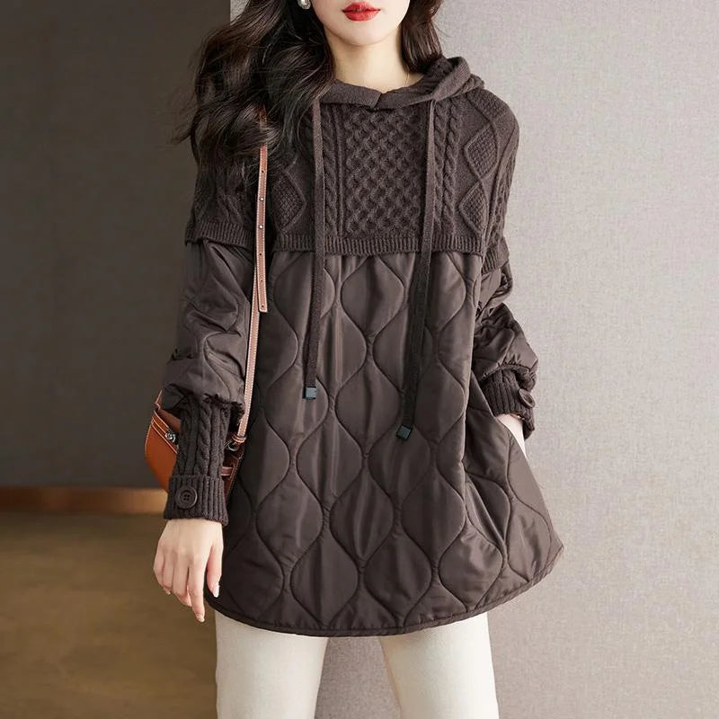 Women Literary Artistic Retro Patchwork Hooded Cotton Jacket Female Winter New Loose Slim Casual Mid Length Cotton Coat Pullover