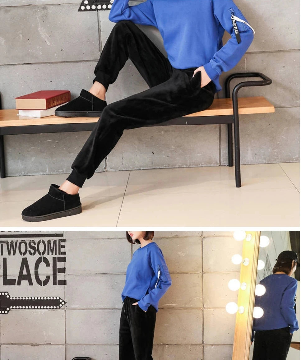 Women Winter Lamb Fur Cashmere Slim Pants Women Casual Warm Harem Pants Thick Lined Fleece Autumn Velvet Sweatpants Trousers